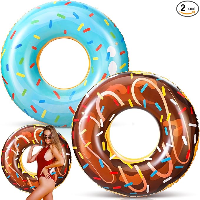 - Large Inflatable Donut Swim Ring: this pack contains 2 inflatable tubes and is a suitable gift for a donut party birthday, summer vacation or other swimming related celebration Its eye-catching design and cute donut style make it a practical gift that can enhance the fun of most pool parties