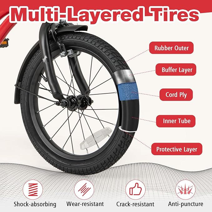 - Reliable Dual Brake System: The hand brake is easy to control with shorter grip distance, bringing kids much convenience. The coaster brake makes it convenient to stop by pedaling backward. Kids can also use the anti-slip handlebars to control the direction while riding.