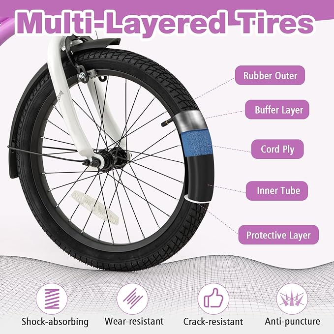 - Safe & Enduring Construction: The front and rear reflectors add extra safety. The enclosed chain guard prevents pinching. Additionally, the solid metal frame withstands multiple bumps for long-lasting service life. The convenient kickstand following the 18" bike allows your kids to ride more courageously