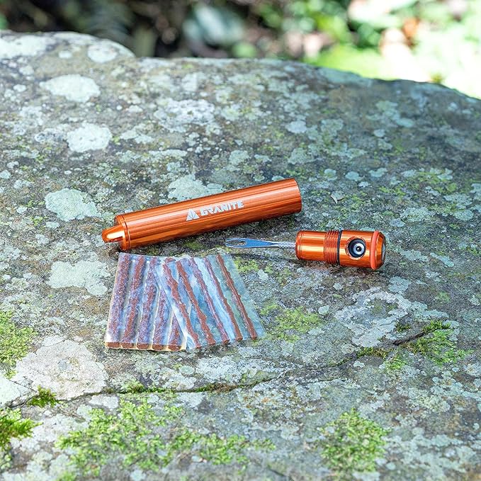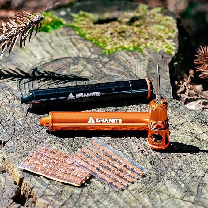 Granite Suture Aero Tire Plug Kit with Integrated CO2 Inflator, Tubeless Tire Repair Kit with 2 Size Plugs, CO2 Tire Inflator Works with Presta Valve