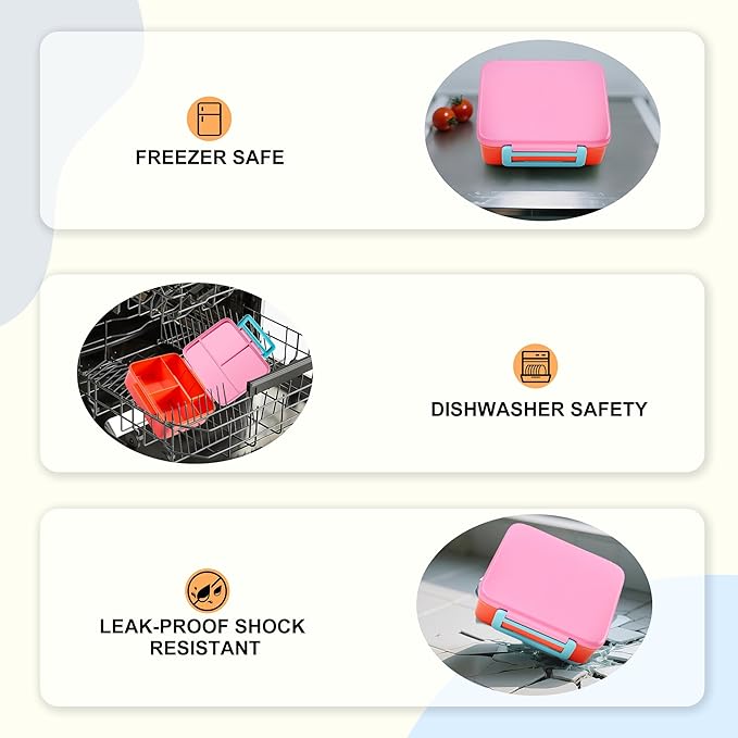 - SAFE AND EASY TO CLEAN MATERIAL - This lunch box made of food-grade, BPA-free materials that are safe for kids. Freezer safe: ≧4℉,can be stored in the refrigerator to keep food fresh. All components are easy to clean and dishwasher-safe,the rubber seals are all removable, that you can wash it thoroughly every day.