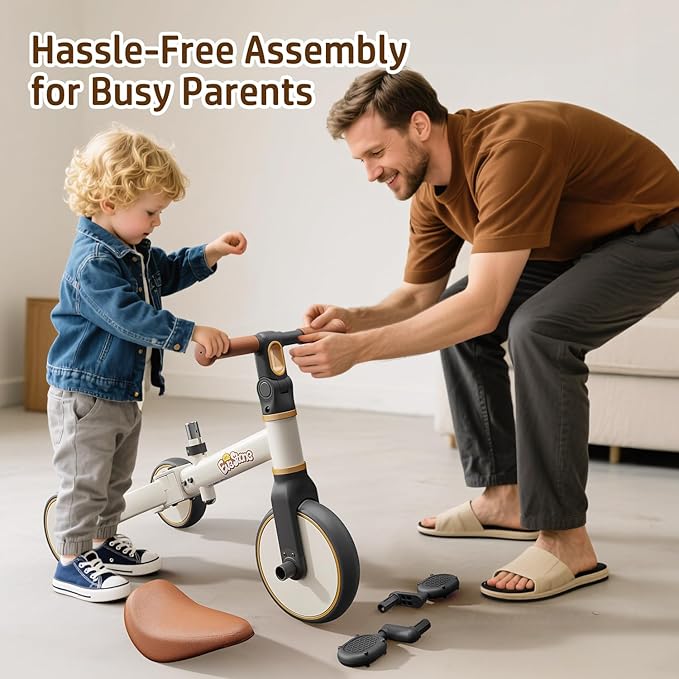 - 【Fast, Tool-Free Assembly – No Frustrating Setup】Say goodbye to complex builds and missing tools. Our toddler bike includes all needed tools and features quick-release pedals and a one-click mode switch. No screwdrivers required—just an easy, clear setup process that gets your child riding in minutes.