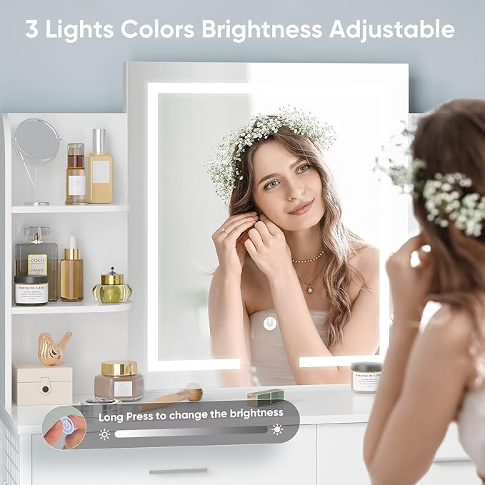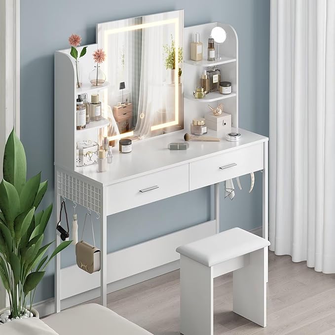 - perfect Gifts for Girls: With its sleek white finish, this vanity table adds a touch of elegance to any bedroom or dressing area. Its sophisticated design enhances any decor, making it an ideal gift for birthdays, anniversaries, or special occasions, and adding a touch of luxury to your loved one’s routine.