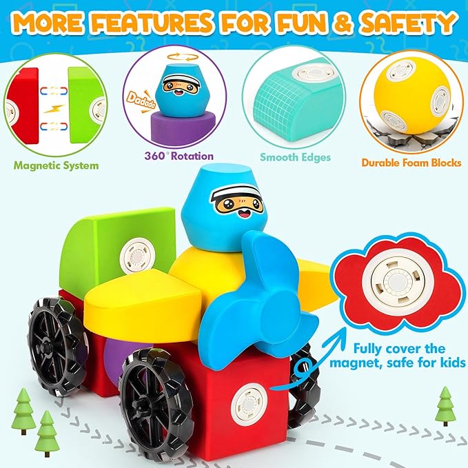 - STEM Educational Toys for Preschoolers: Ideal building toys for kids ages 4-8, these magnetic foam blocks teach geometry, color recognition, magnetism, engineering concepts, and basic math through play. As children design unique structures, they also hone creative thinking and motor skills, watch them stay engaged for hours! Attracting kids of all ages, our kids magnetic blocks grow alongside your little one