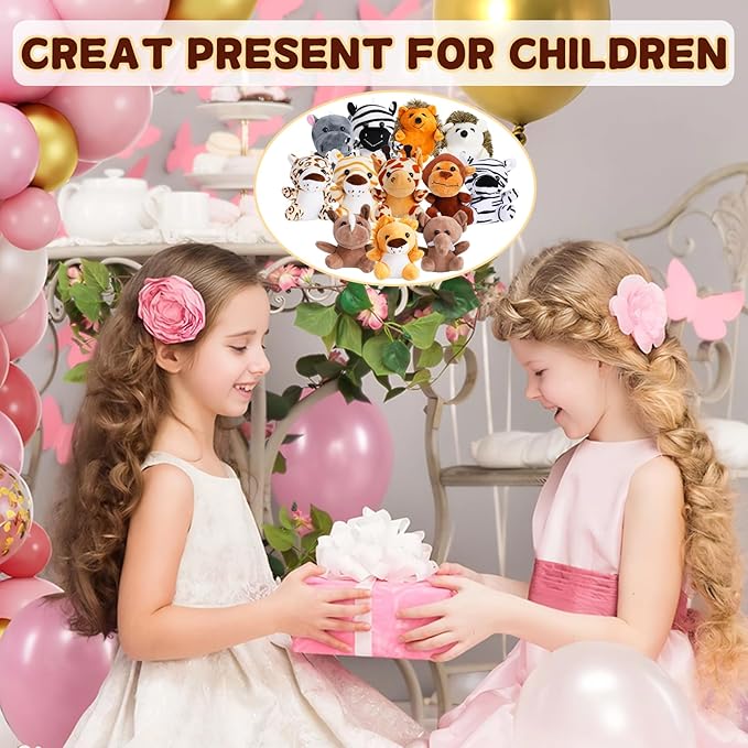 - 12 Easter Mini Stuffed Animals: Our set includes a variety of cute and cuddly animals, including white tiger, Lion, monkey, tiger, leopard, giraffe, elephant, rhinoceros, zebra, white hedgehog and brown hedgehog, perfect for animal-themed parties or everyday fun.
