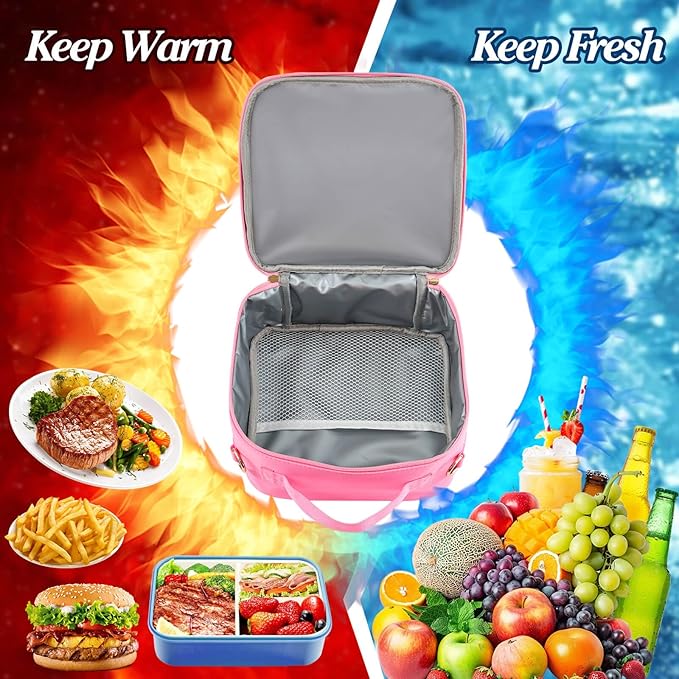 - 【Insulated Girls Lunch Box Size】: The soft kids lunch box for girls measures 9in x 9in x 4.3in, which is large enough to hold ice pack, lunch containers, cutlery, snacks, sandwich, some fruits, or any other essential food items needed for park trips. In addition, it comes with a detachable shoulder strap that can be adjusted from 29.5in to 53.5in in length, which can be used as a crossbody bag, tote, shoulder bag, allowing your lovely girl to carry it in a variety of ways.