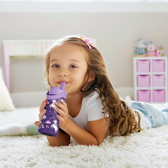 Unicorn Kids Water Bottle With Straw Lid 12oz Insulated Stainless Steel, Travel Tumbler, Unicorn Gifts For Girls, Birthday, Christmas, Back To School