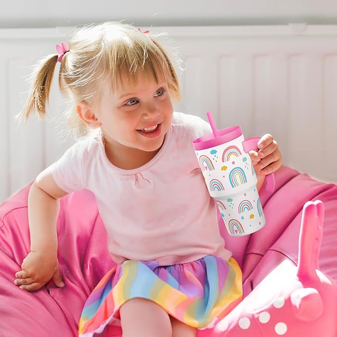 Rainbow Tumbler 20oz with Handle and Silicone Straw Lid for Kid, Insulated Stainless Steel Cup, Gift for Kids Girls, Gifts Idea for Birthday Christmas Back to School
