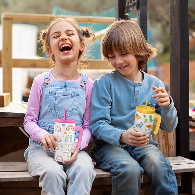 - Easy Hydration: Designed to make drinking more enjoyable for kids, this 20-ounce stainless steel tumbler features a comfortable half-handle and a soft silicone straw for effortless sipping.