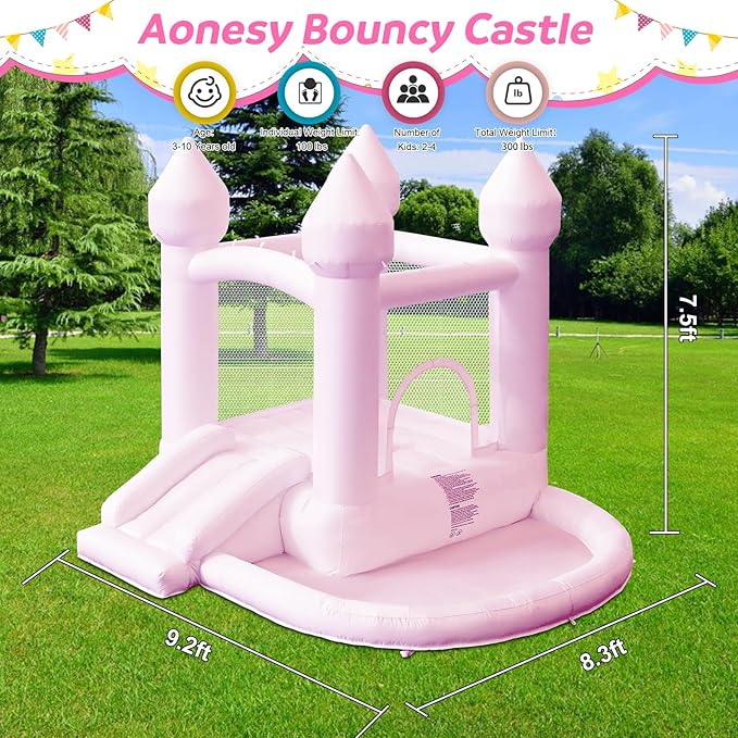 Kids Bounce House, Inflatable Bounce House with Ball Pit & Slide Toddler Bounce House Indoor Portable Fun House Outdoor Bounce House with Blower Moon Bounce Castle for Party 9 * 9 * 7 FT (Pink)