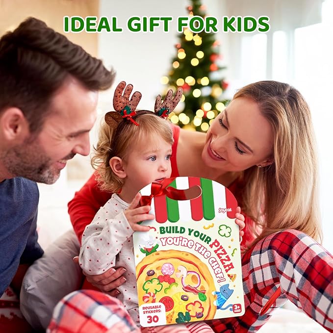 JoyCat Reusable Sticker Book - Jelly Stickers for Toddlers, Kids Sticker Activity Book, Travel Toys for Road Trip, Car & Airplane, Educational Learning Gifts for Boys and Girls Ages 3-5 (Pizza-Making)