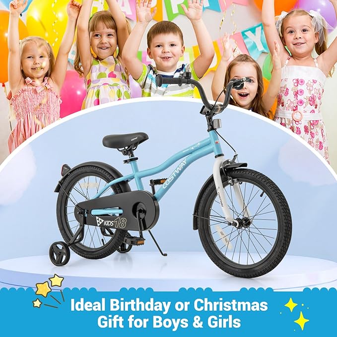 COSTWAY 12/14/16/18 Inch Kids Bike, Children Toddler Bicycle with Training Wheels, Adjustable Seat & Handlebar, Handbrake & Coaster Brake, Reflectors, Bell, Suitable for 3-8 Years Old Boys Girls