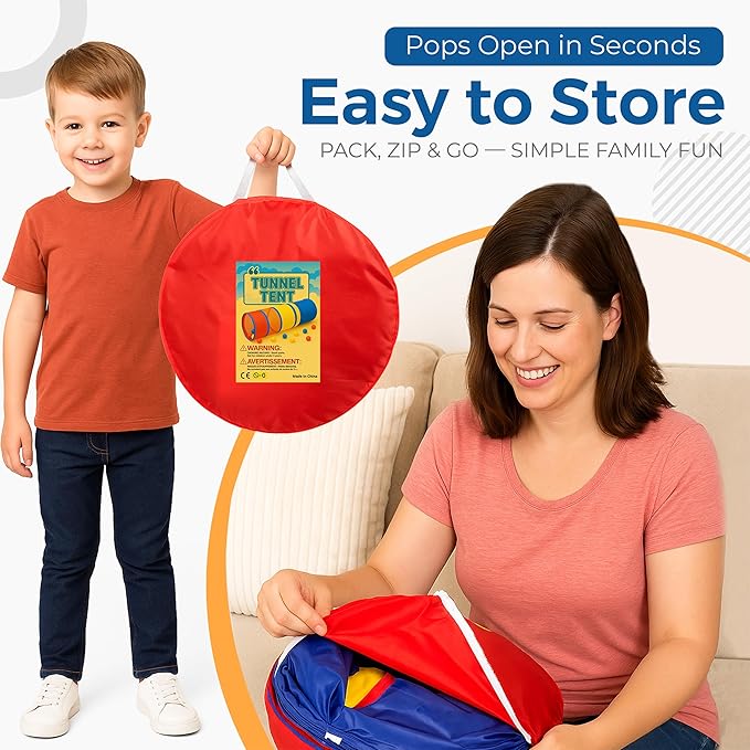 - 【PERFECT GIFT】This toddler play tunnel makes a fun and thoughtful gift for little ones who love to crawl, explore, and play. It’s a great choice for birthdays, Christmas, Thanksgiving, or any special occasion. The tunnel folds flat within seconds for easy storage in the included carry bag—perfect for parents who value convenience. Backed by friendly customer support for your peace of mind.