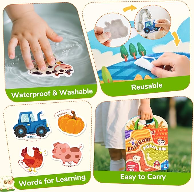 JoyCat Reusable Sticker Book - Jelly Animal Stickers for Toddlers, Kids Sticker Activity Book, Travel Toys for Road Trip, Car & Airplane, Educational Learning Gifts for Boys and Girls Ages 3-5 (Farm)