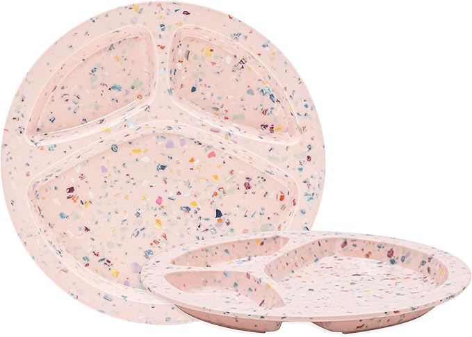 Bzyoo 9-Inch Melamine Divided Plates – 3-Section Portion Control Plates, Food Safe & Durable, Lightweight & Unbreakable, Reusable Tableware for Kids, Big Kids & Everyday Meals, Confetti Pink