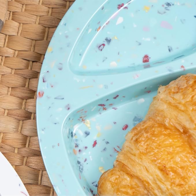 bzyoo 9-Inch Melamine Divided Plates – 3-Section Portion Control Plates, Food Safe & Durable, Lightweight & Unbreakable, Reusable Tableware for Kids, Big Kids & Everyday Meals, Confetti Green