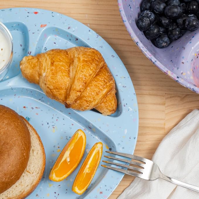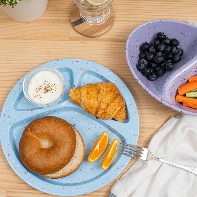 bzyoo 11-Inch Divided Plate Set of 2 - Confetti Blue 100% Melamine Portion Control Plate for Adults, Kids Unbreakable, Dishwasher Safe for Camping, BBQ