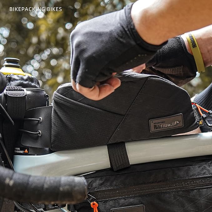 Rhinowalk Bike Frame Bag 1.2L, Waterproof Handlebar Bag with Phone Holder, Small Front Bag with Strap or Screw Mount, Fits Most Bikes – Black+Yellow
