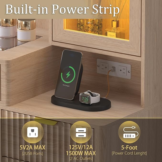 - Built for Stability, Safety, and Convenience: Constructed with durable P2-grade engineered wood, BOROON vanity with lights features a reinforced structure, anti-tip safety design, smooth and quiet drawer slides, and metal handles. A built-in power outlet supports hair styling tools, charging devices, and more.