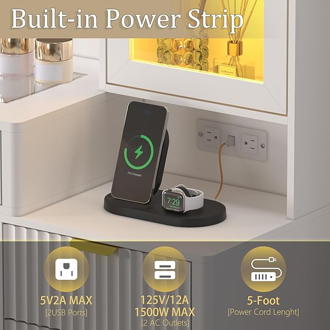 - Built for Stability, Safety, and Convenience: Constructed with durable P2-grade engineered wood, BOROON vanity with lights features a reinforced structure, anti-tip safety design, smooth and quiet drawer slides, and metal handles. A built-in power outlet supports hair styling tools, charging devices, and more.
