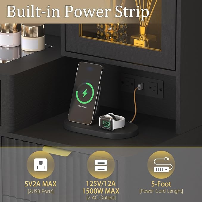 - Built for Stability, Safety, and Convenience: Constructed with durable P2-grade engineered wood, BOROON vanity with lights features a reinforced structure, anti-tip safety design, smooth and quiet drawer slides, and metal handles. A built-in power outlet supports hair styling tools, charging devices, and more.