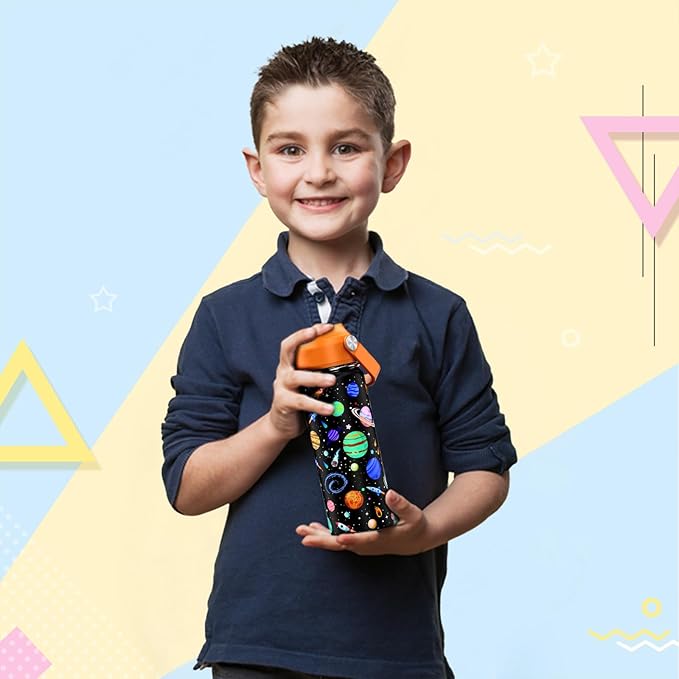 18oz Kids Insulated Water Bottle with Straw Lid - 18/8 Stainless Steel Kid Cup BPA-FREE Travel Tumbler Double Wall Vacuum Leak Proof Portable Toddler Water Bottle (Space)