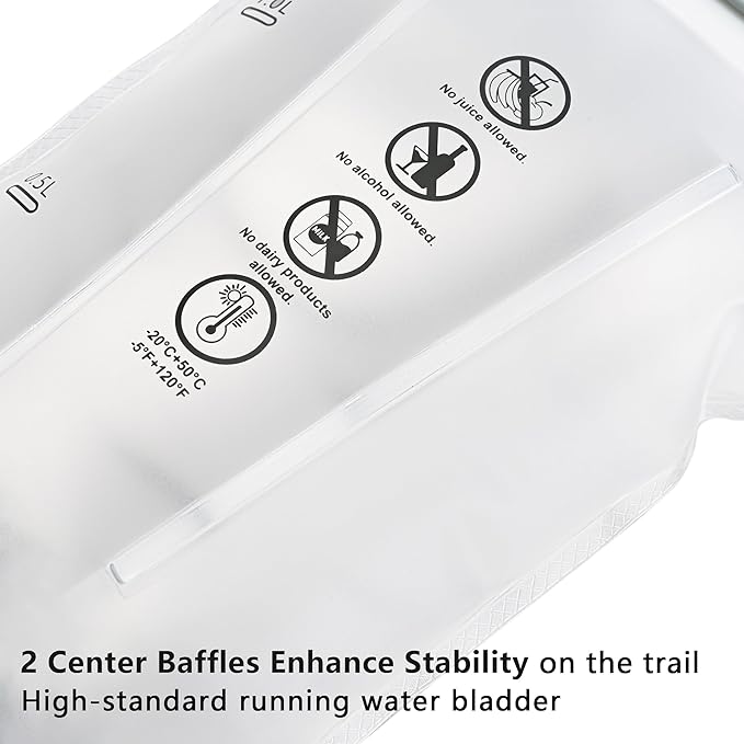 - 【BEST HYDRATION BACKPACK REPLACEMENT】Our hiking bladder feature a double-baffle technology, which can minimize the shaking of water during running or cycling, providing you with the best sports experience