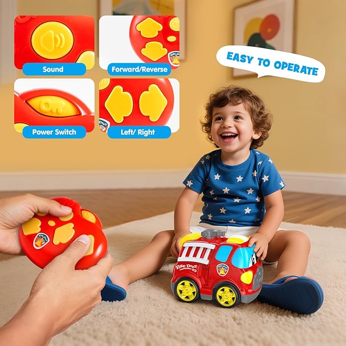 - Learning and Playing: Our improved version of the fire engine toy car includes helpful early teaching elements that assist youngsters in understanding how firefighters save people. Kids can use the remote control to maneuver the car forward and backward and sound the horn, creating a completely realistic driving experience