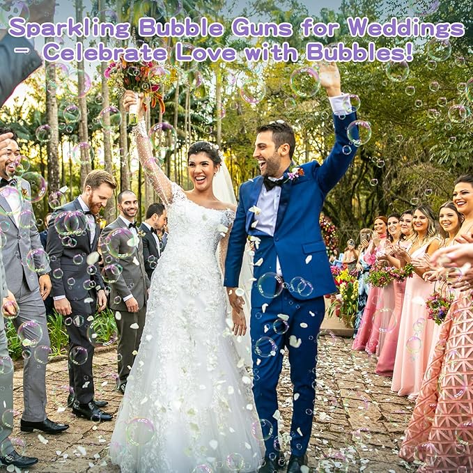 - 【IDEAL OPTIONS】:This bubble machine can bring endless fun and fantastic atmosphere in a series of events such as weddings, birthdays, parties, graduations, dates, outdoor games, Christmas, camping, beaches, entertainment, carnivals, Halloween, outdoor garden patios and so on.Discover the fun of our bubble gun blaster, a bubble machine gun that is both easy to refill and operate. The bubble shooter is a great way to enjoy the outdoors and party with family and friends.