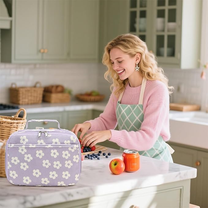 Bluboon Kids Girls Lunch Bag Insulated Lunch Box for school Corduroy Lunch Cooler Organizer School Kids Lunch Tote