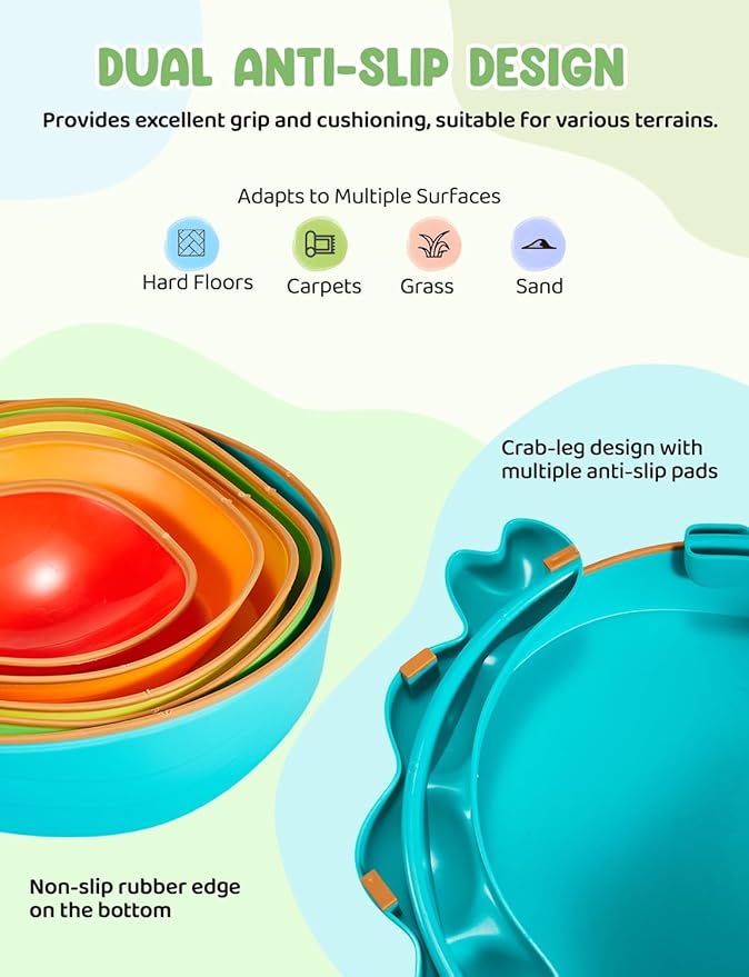 - (Stackable & Space-Saving Design)Nesting crab-shaped stones stack compactly with 5 progressive heights (1" to 5"). Ideal for small spaces and includes storage bag.Gifts that look good at home, toddler play equipment