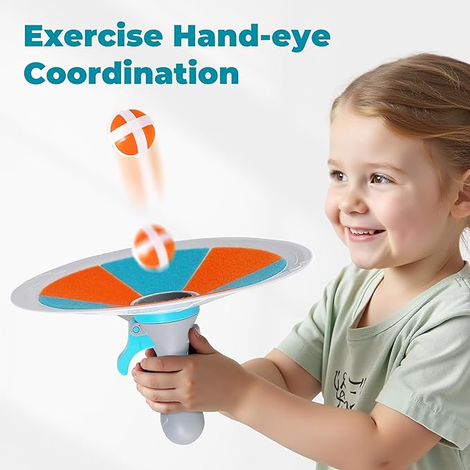 - 【Just Press to Shoot】Make the ball fly! Place a ball in the center hole and press the Trigger on the handle to pop it up. It's a effortless and fun way for everyone to play, no strong throwing arm needed.