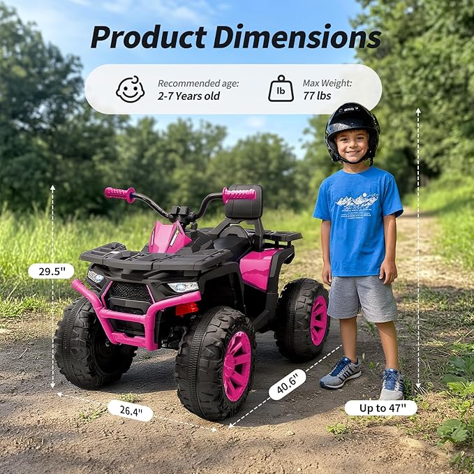 - 14.4" LARGE TIRES FOR ALL TERRAINS: Built for adventure, this kids' electric quad features four rugged 14.4-inch tires and front/rear LED lights, ensuring stable performance on grass, pavement, and more.