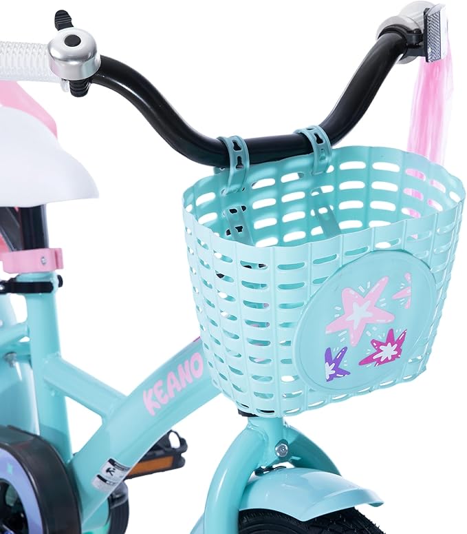 - Elegant Design for Kids - The KEANO Zinnia Princess 14 Inch Girls' Bike comes with a doll bike seat, an cute basket, and charming streamers. They turn each ride into a wonderful journey, making it highly appealing to young girls at first sight