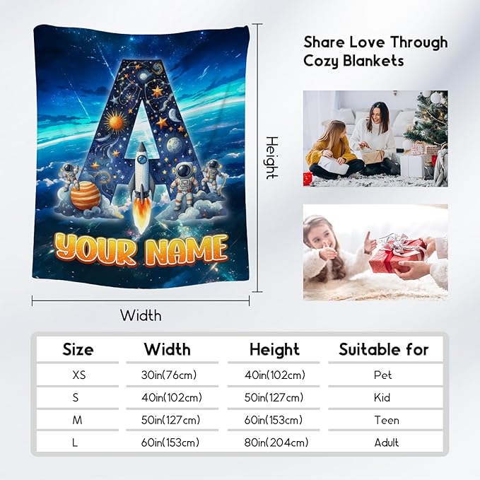 Boys Blanket - Personalized Planet Gifts with Name for Kids - Custom Monogram Blanket for Son Daughter - Warm Fuzzy Flannel Throws - 4 Sizes for Toddler/Children/Teens/Adults