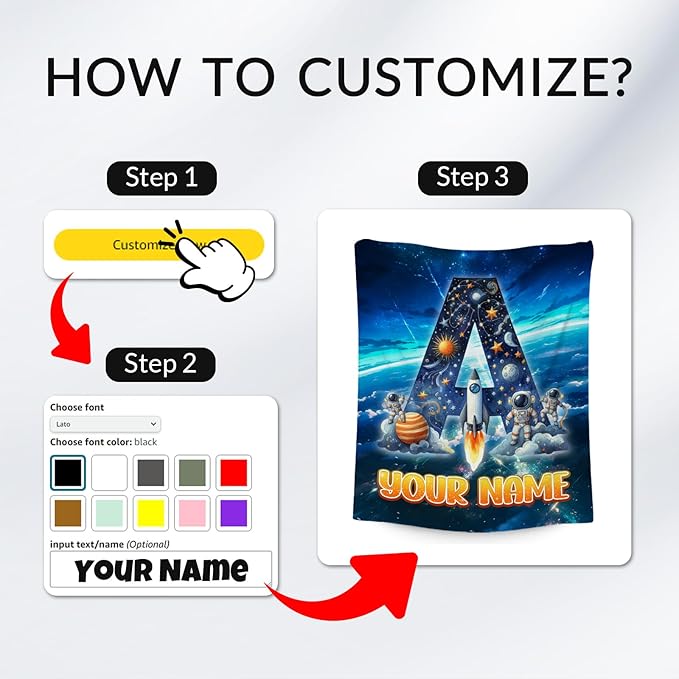 - Personalized Blanket with Name: Create a heartwarming gift by customizing this cozy flannel blanket with name or initial! Choose from vibrant font colors to make it extra special, great for kids, teens, or adults