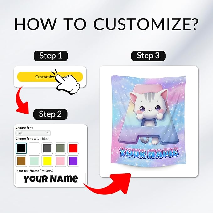 - Personalized Blanket with Name: Create a heartwarming gift by customizing this cozy flannel blanket with name or initial! Choose from vibrant font colors to make it extra special, great for kids, teens, or adults