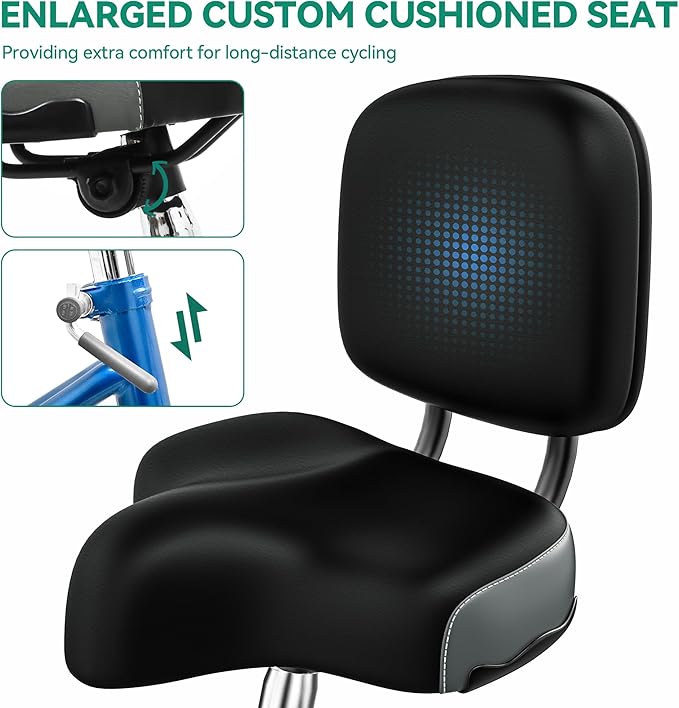 - Custom Seating: Structured with an enlarged, custom seat with a supportive backrest and adjustable height, this cruiser bike offers you the ultimate riding comfort; It accommodates riders of various heights so that everyone gets a personalized fit