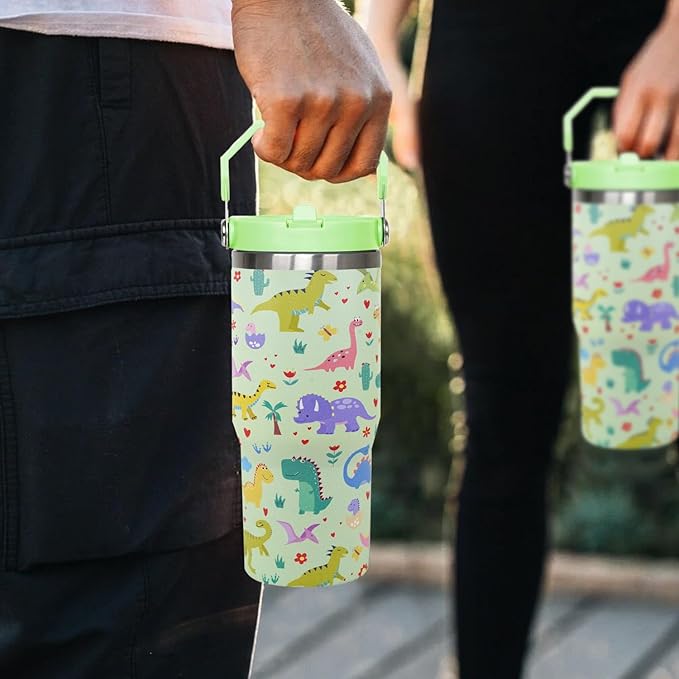 - Dinosaur Tumbler: it is your 30oz dinosaur insulated tumbler,dinosaur drinking glass,dinosaur water bottle,dinosaur coffee mug, cute dinosaur insulated cup,dinosaur mugs lovers,dinosaur coffee cup, which can be put on the cup holder of most cars and put anywhere as you want and no worry to wet your place
