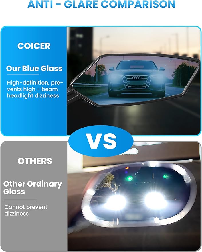 - 🚲️【Anti-Dazzle】With an anti-reflective coating, our bike mirror effectively reduces visual dazzle caused by strong sunlight, car high beams, and snow, enhancing driving safety.