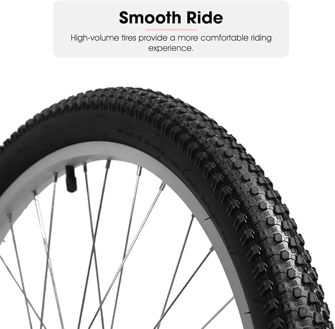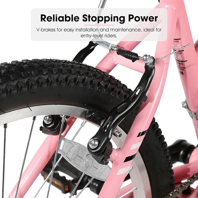 - Sporty and Safe: Dual v-brakes provide excellent stopping power, making your rides safer; All-terrain xc sport tyres are designed for rugged roads, ensuring non-slip and blast resistant performance