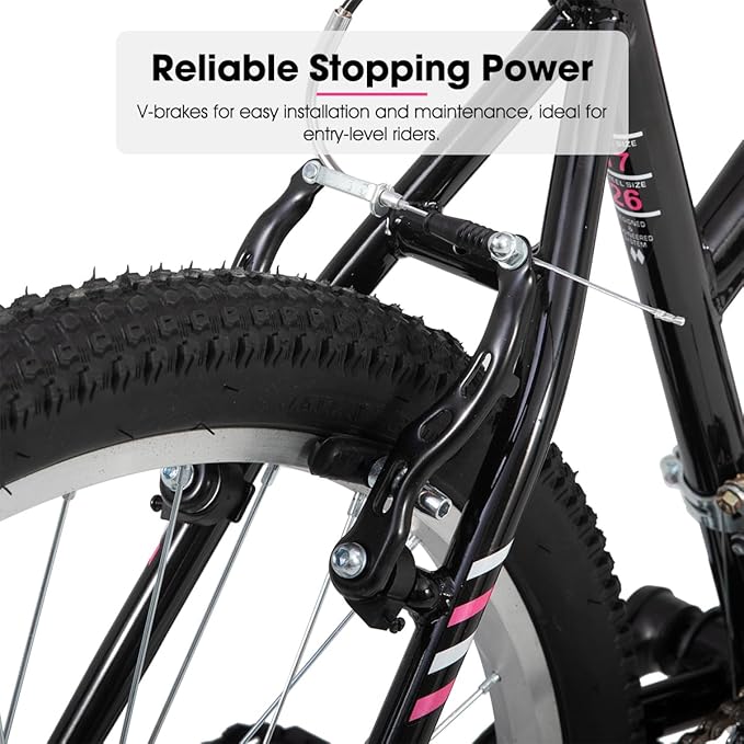 - Sporty and Safe: Dual v-brakes provide excellent stopping power, making your rides safer; All-terrain xc sport tyres are designed for rugged roads, ensuring non-slip and blast resistant performance