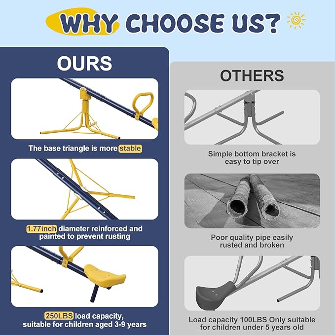 - 360° DESIGN: This innovative teeter totter for kids outdoor breaks through the traditional way of playing and supports 360° free rotation, allowing children to experience the fun of rotation while going up and down! The centrifugal force when rotating brings a richer game experience, making each play full of freshness, and children will not get tired of playing for a long time! All can make the outdoor activities instantly upgraded, become the focus of the playground!