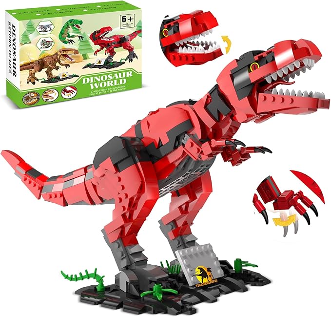 Dinosaur Building Blocks Toys for Kids Ages 6-14 | STEM Building Block Set, Christmas Birthday Gift for Boys Ages 6-8 7-9 8-14 (RED)