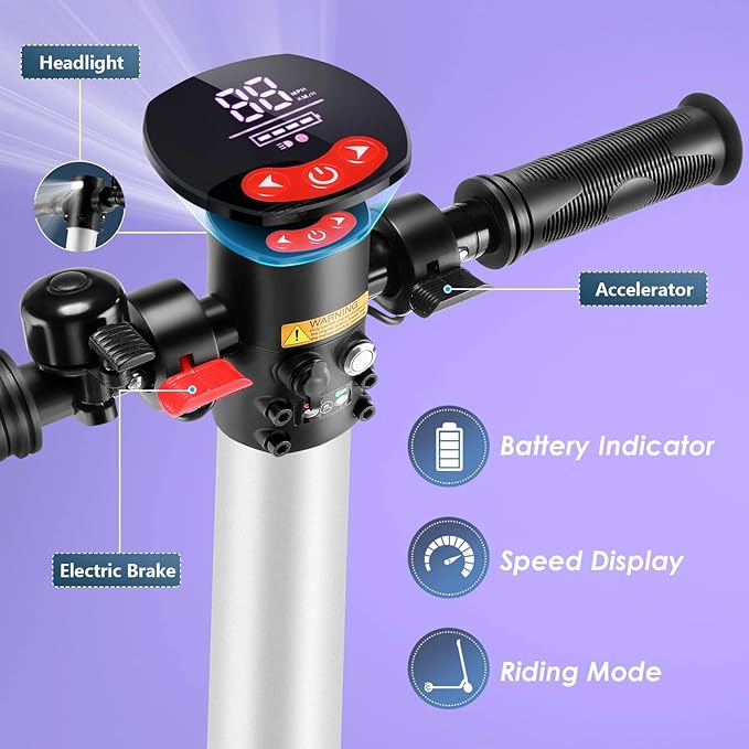 - 🌟Enjoy safe riding:The kids electric scooter adopts a start-up assist design tailored for children. The motor will not start until the riding speed reaches 2 mph, thus avoiding the accidental start of the scooter. The electric scooter for kids ages 8-12 features dual-braking (EABS + electronic brakes). The electric scooter also comes with non-slip pedals and handles to provide your kids with a safe,stable and enjoyable ride.This electric scooter for kids has passed UL 2272 certification.
