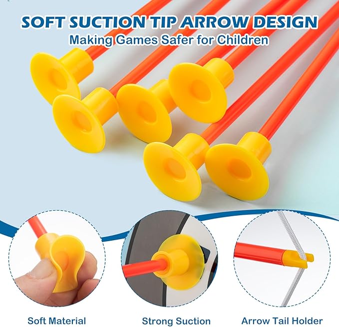- Safe & Durable Build: Made of safe materials. Soft suction arrows and a sturdy, waterproof LED target ensure safe indoor/outdoor use. Smooth edges and adjustable bow strings for comfort;