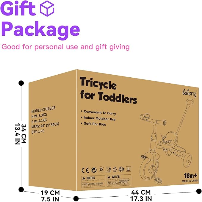 - 2-IN-1 TODDLER TRICYCLE: This versatile tricycle is suitable for growing toddlers, offering both a parent push mode with a convenient push rod and a child ride-on mode. It adapts to different stages of your child's development, providing hours of fun and learning