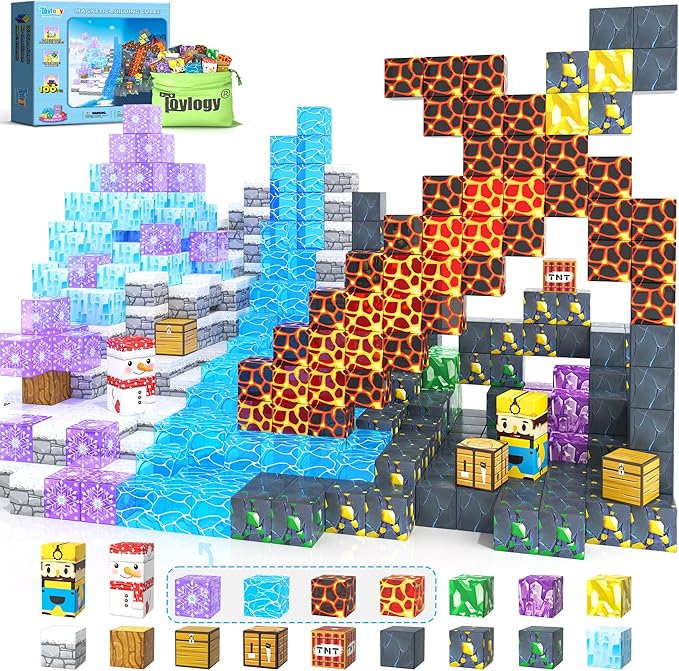 - 【EXPLORE MAGIC ICE CAVE & MINE MAGWORLD】Discover two enchanting worlds with Toylogy’s 100pcs magnetic blocks! Build icy caves with frosted snowflakes, flowing water, and clear, sparkling transparent magma rocks. Building blocks set sparks kids’imagination for kids ages 4-8, as they create bridges across ice lakes or build mine sword caverns. Join this exciting adventure - whether using magnetic tiles or magnetic game sets, perfect magnet toys for boys, girls, toddlers, and kids ages 3-12.
