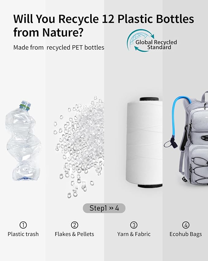 - 【Breathable and Ergonomic Design】 Ecohub hydration backpack engineered with 3D contour stitching that follows spinal curvature, reduces hydration hiking pack shift and bouncing during runs. The breathable shoulder straps and back panel design keeps your back cool by maintaining air circulation, preventing discomfort due to accumulated heat. (PATENT PENDING)