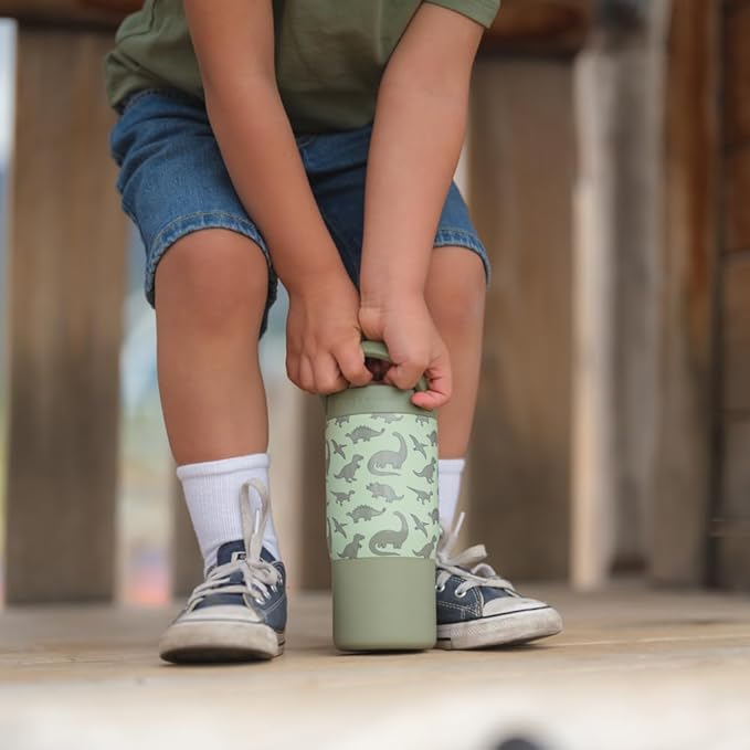 HydroJug Kids 14 oz Sport Water Bottle – Stainless Steel, Insulated, 100% Leakproof, With Carry Handle, BPA-Free – Kid-Friendly Design – Durable & Dishwasher Safe, Dinosaur